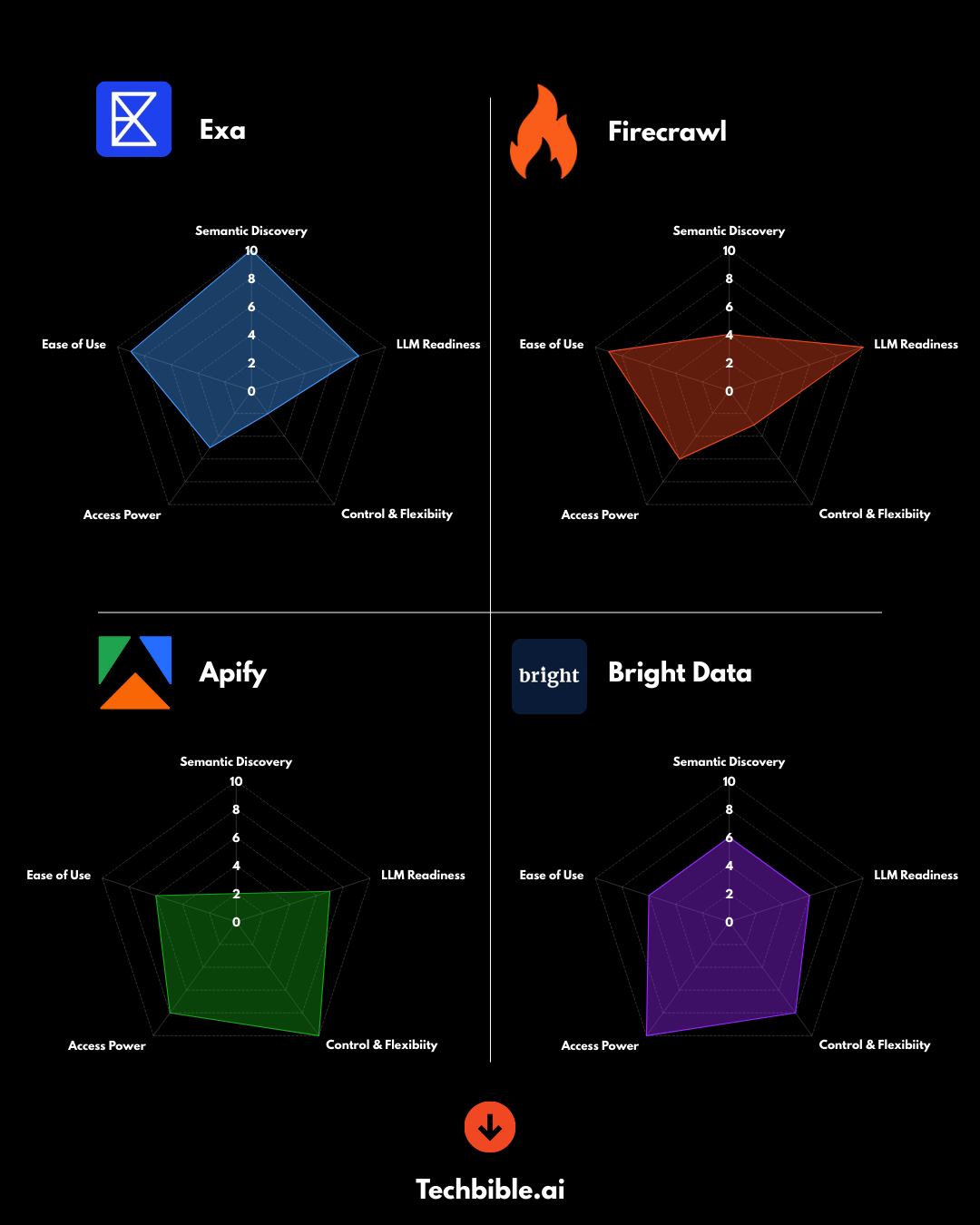 To help you cut through the noise, we analyzed four leading players—Exa (formerly Metaphor), Firecrawl, Apify, and Bright Data—to determine which one fits your specific needs.